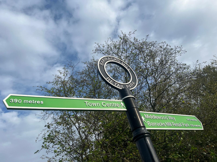 From the cenotaph, follow Mill Lane, keeping WOE Pottery, Swindells and Space4 Autism on your right.