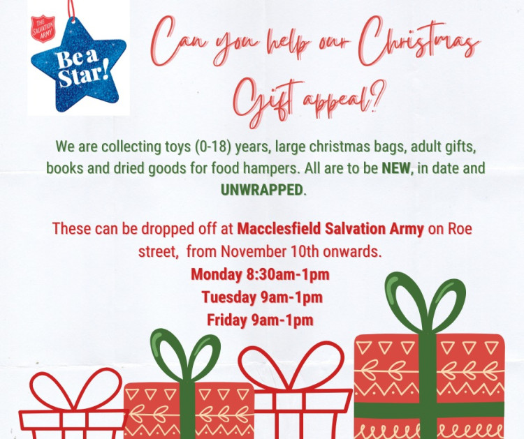 The Macclesfield Salvation Army's Christmas Present Appeal draws to a close this Friday, December 19.