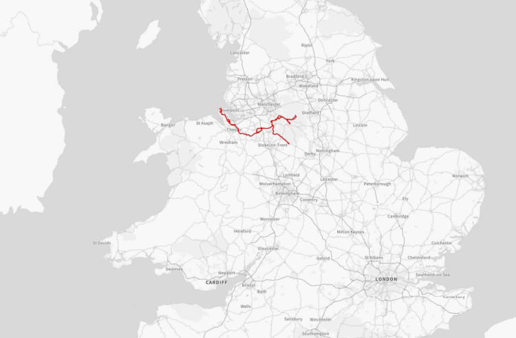 If approved the scheme would cover 121 miles (195 kilometres) from Breedon's Hope Valley cement works, nine miles north-east of Buxton, just above Bradwell; connecting to Tarmac's Tunstead facilities close to King Sterndale and Fairfield; with the two lines merging at a new connecting facility on what is currently open countryside between Dove Holes and Chapel, before heading to the south of Chapel, around the east and north of Tunstead Milton and north of Whaley Bridge, before heading west, splitting around either side of Lyme Park.