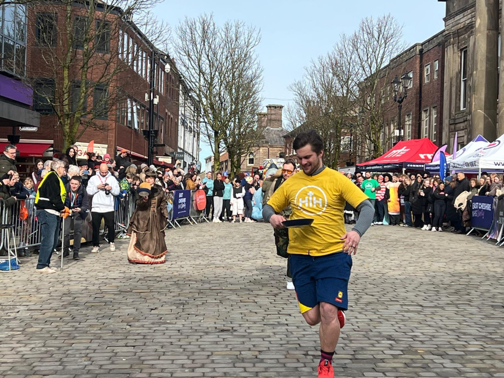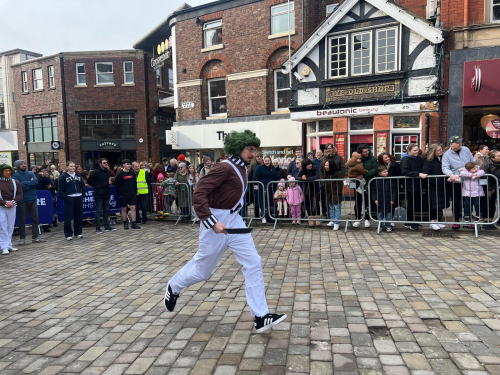 Teams representing a number of local organisations, including the Silk Museum, Bollington Brewing and Holy Trinity Church, battled it out in a series of relay races, flipping pancakes and sprinting up and down Mill Street.