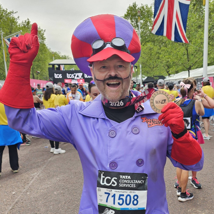 They were joined on the capital streets on Sunday, April 26, by long-standing supporter Toby Eyre, who added a dash of mischief and nostalgia by completing the marathon in full fancy dress as the legendary cartoon character Dick Dastardly.