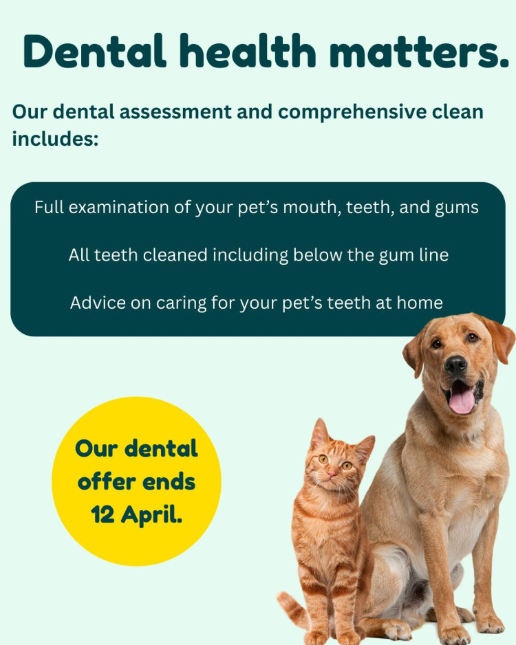 Until April 12, a dental assessment and comprehensive clean at Wright and Morten Vets is priced at £349, down from the usual price of £435.