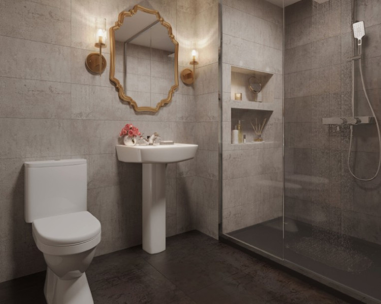 Meanwhile, the contemporary bathroom suites have been finished with Porcelanosa wall tiles and Geberit sanitary wear.