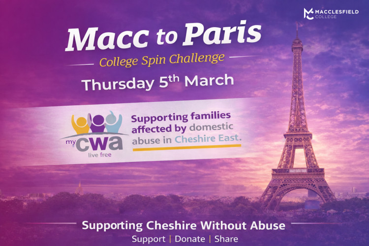 Participants will collectively cycle the distance to Paris on spin bikes to raise money for Cheshire Without Abuse, a charity supporting adults and children affected by domestic abuse across Cheshire East.